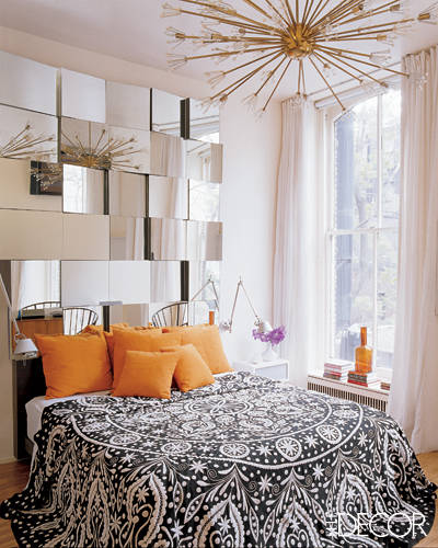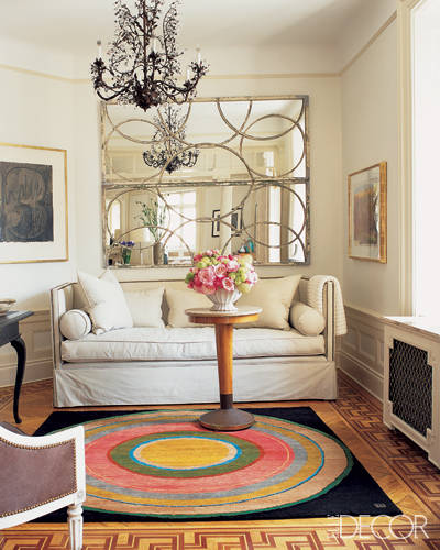 A mirror can also reflect natural light into dark areas of your room. Natural light is always a bonus and moving the mirror to different walls during the day will help you to find the best place to position it. A large mirror also gives a room a focal point. The pictures above are from Elle Decor and show great example of how mirrors can transform a normal room into something special.