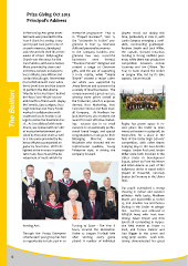 Prize Giving Oct 2013 Principal’s Address In Performing Arts great enter- enterprise programme: Year 10 players stood out during this tainment was provided for the in “Project Business”, Year 11, time, particularly in Year 8, with Year 8 Check-in-Evening. Every the “Enterprise in Action” pro- Jamie Sempey emerging a confi- year 8 pupil took part in one of gramme & Year 13, interview dent, commanding goalkeeper. six performances, developed skills and personal economics. Andrew Smyth and Jack Millar, and rehearsed in their first three In the company business pro- the captain, showed tenacious weeks of school. Ballyloughan gramme two very successful tackling & strong midfield pres- Church was the venue for the businesses were formed. ence, while there was productive Carol Service, with some festive “Precious Parcels” designed and competition between Joshua Music provided by choirs and created a range of Christmas Courtney and Lee O’Brien. The orchestra. Soloists included Re- gifts, with the aim of supporting Year 10 team shared the Under becca Whyte, Amy Wilson and a local charity, while “Simply 14 League title, led by its able Jordan McCullough. More theat- Simple” created a recipe calen- captain, Callum McGall. rical entertainment came when dar which was supported by the A-Level class trod the boards Jenny Bristow and sponsored by The Bellfort eral months of hard work. Hayley the Trade Fair, which is unprece- Rugby has grown apace in re- a variety of local businesses. The to perform the Melodrama ‘Murder in the Red Barn’. Behind company proved a great success, winning three prizes overall at the ‘Boos’ and ‘Hisses’ lay sev- dented; Best Marketing, Best McCormick, Gary Lanigan, Shau- nagh Brennan and Stacy Foster Customer Service and Best Over- worked in collaboration with all Company. At Northern Ire- students from St Patrick’s Col- land level they also received the lege to re-live the theatrical clas- award for most effective market- ing: success due in no small sic. As is traditional with melo- drama, we opened with an ‘olio’ sional brand image, and special of musical entertainment pro- were just beaten in a play-off, by vided by the junior choir as well congratulations must go to their Downshire, for a place in the as a solo piece provided by Re- measure to an extremely profes- cent years: the Under 14 team Aaron Managing final of the Ulster High Schools’ Director, becca Whyte accompanied on McLeister who showed real en- competition, with other teams guitar by Gina Irvine. We’re de- trepreneurial qualities, Young enjoying play in the East Antrim lighted at the increase in peripa- Enterprise style, in driving the League. Jordan Rock and Jordan tetic music lessons and the de- company forward. Millar were both involved in the velopment of music within Per- Ulster Under 16 Development Squad, joined by Evan McLeister and Brian Adams as part of the Ballymena Under 17 squad which played at Ravenhill, narrowly beaten by Dromore in the Ulster final. Our pupils maintained a strong showing in indoor and outdoor athletics: Holly Lecky, Matthew Waide and David Mills at Under 13, and Jennifer Lee and Denico Dunlop in the Under 15 catego- ries. Success was achieved at NEBSSA level, with Leah Arm- strong, Adam Brown and Amy Symth all contending in respec- forming Arts. Turning to Sport - The Year 8 tive field events at Under 13 team, secured the Mid-Antrim level, and Tyrone Balmer and Through the Young Enterprise Under 12 League Football title Jara Bigger in the 200m and scheme each year group has had after winning every game Long jump events. Leah Arm- an opportunity to take part in an played. A number of individual strong demonstrated her great 12