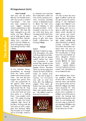 PE Department (Girls) Girls’ Football as Coleraine had snatched Year 10 June 2013 was an active this trophy from under our The Year 10 team has once time for our football teams nose on two previous occa- again excelled in spirit, tal- with the annual Co Antrim sions. However, Coleraine ent and teamwork, partici- Tournament. The Year scored an impressive goal pating in the Ballymena 10/11 team captained by to leave the final score League and NEBSSA Com- Jarra Bigger narrowly one- all leading to the petition. Due to vast num- missed progressing to the dreaded penalties. Unfor- bers taking part we man- semi finals. The Year 8/9 tunately it was not to be aged to field two year 10 team managed to go one our third time lucky, and teams which allowed for better and they finished Dunclug lost the final three more games and experi- top of their group, reach- –one. This is a talented ence for all. Throughout ing the semi final. Unfortu- group of girls who were the year there was particu- terrific ambassadors for larly skilful netball play nately they conceded a The Bellfort the eventual winners Ulidia Year 8 Netball shots from the furthest dis- Dunclug College. demonstrated, in particular goal in the last fifteen sec- scoring countless swish onds of the game, losing to tance from the post to College. achieve high scores quickly. The Year 8 squad met regu- The contribution of Anna larly throughout the year Knox into Goal Keeper po- and showed great promise. sition alongside Kirsten Many girls had not played netball before but were proved difficult for many very impressive in how Bally- teams within quickly they picked up the Collins in Goal Defence, game and built upon their mena. Superb defence general fitness. Numbers from our aptly named ‘twin In the Coleraine Sevens were very encouraging and towers’ was the backbone competition, an amazing indeed we had to field two to our team this year. thirty five teams partici- teams on several occa- pated in this annual tourna- sions. The Year 8 team ac- New additions into shoot- ment. Our Year 8/9 girls counted for themselves ing positions within the topped their group once very well on their first second half of the league more and progressed to foray into the Ballymena secured some well earned the quarter finals where League. They were de- wins against teams such as they defeated Cullybackey feated only once, by Bally- Slemish College and Bally- High School five nil. They mena Academy making mena Academy ‘B’. Amy met a strong Dalriada team them very worthy runners Smyth and Britney Hill in- in the semi final and won up . This will be a team to jected some extremely in- that game in a thrilling look out for next year! telligent and skilful play to three - two penalty shoot ensure the Dunclug side out. This meant Dunclug finished these games in the were to meet the hosts, lead. Up and coming play- Coleraine High School in ers from Year 9, Nicole Er- the final. Dunclug took the win, Kayleigh Willighan and lead early on with a super Rebekah Houston seam- goal from Shannon Millar lessly joined our ‘B’ side . and it looked as if it might just be Dunclug’s moment, 68