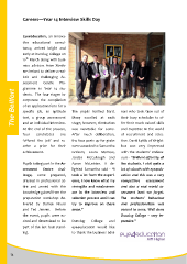Careers—Year 14 Interview Skills Day Eye4Education, an innova- tive educational consul- tancy, arrived bright and early at Dunclug College on th 10 March along with busi- ness advisors from North- ern Ireland to deliver a real- istic and challenging As- sessment Centre Pro- gramme to Year 14 stu- The Bellfort corporate the completion The pupils battled hard. sors who took time out of dents. The four stages in- of an application form for a specific job, an aptitude Many excelled at each their busy schedules to of- test, a group assessment fer their much valued skills stage; however, elimination and an individual interview. At the end of the process, After much deliberation, of recruitment and selec- four candidates are was inevitable for some. and expertise in the world ‘offered the job’ and re- the four posts up for grabs tion. David Lyttle of Wright- ceive a prize for their were awarded to Samantha bus was very impressed achievement. Graham, Laura Morrow, with the students’ endeav- Jordan McCullough and ours - “Brilliant effort by all Pupils taking part in the As- Aaron McLeister. A de- the students. I visit quite a sessment Centre chal- lighted Samantha said - “I lot of schools with eye4edu- lenge, came prepared, took a lot from the experi- cation and this was a very dressed in professional at- ence, I now know what my competitive assessment tire and armed with the strengths and weaknesses and also a real world as- knowledge gained from the are in the interview and sessment least we forget. preparation workshop de- selection process and I can The students’ behaviour livered by Darren Nixon try to improve on these and professionalism was and Ted Jensen. Before areas.” second to none. Well done the event, pupils were ex- Dunclug College – very im- cited and determined to be Dunclug College and pressive.” part of the last four stand- eye4education would like ing. to thank the business advi- 74