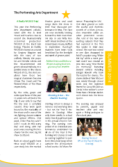 The Performing Arts Department A Really WICKED Trip! theatre genre and used ramus - Preparing for Life! songs from the show in One class graced us with This year the Performing their final showcase per- the soulful and rhythmic Arts department collabo- formance in May. The class sounds of a blues percus- rated with the A level are now excitedly looking sion ensemble while an- Travel and Tourism class to forward to their next thea- other presented scenes attend the internationally tre trip to see Willy Rus- that told of the new and acclaimed production sell’s Blood Brothers at the exciting subjects that they WICKED at the Bord Gais Grand Opera House, Belfast had explored in the first Energy Theatre in Dublin. in September. Dunclug’s few weeks in their new WICKED is based on a novel students have been truly school. The roof was raised by Gregory Maguire and bewitched by the limelight as one class drummed to tells the story of two and smell of grease paint. Avicii’s popular song ‘Wake unlikely friends; the popu- Me Up’ while a more gen- lar and blonde Glinda and Robbie Erwin and Rebecca teel sound was created as the misunderstood and Whyte studying their pro- one class sang ‘One World green skinned Elphaba. In a gramme from WICKED (In Harmony)’ featuring SUMMER 2014 parallel story to the Classic several soloists including Wizard of OZ, the story ex- Borgan Havelin who took plores how these two the lead in the chorus. The magical characters become classic fable of Finn McCool Glinda The Good and The was retold through choral Wicked Witch of The West work and the audience respectively. feared for Cassy McGloin as Gerda in the robber’s scene By the sobs, gasps and from Hans Christian Ander- wide eyed faces of the year Checking It Out – The son’s classic tale The Snow 13 pupils who attended the Check In Evening! Queen. trip, it was safe to say that the trip was a complete Starting school is always a The evening was enjoyed success. They were spell- nervous and worrying time by parents, pupils and bound by the musicality of – but not for Year 8 stu- teachers alike and was the show and in awe of the dents in Dunclug. After again a fitting prologue to set, lighting, dance routines only three weeks in school the school year. and special effects. One every Year 8 pupil took part pupil, Chloe Peachey said ‘I in the annual Check-In Eve- wish I could do this every ning. The evening com- day’ and along with her prised of six individual per- peers was scouring the bro- formances undertaken by chures for the next big hit all six of the Year 8 Per- show to attend. forming Arts classes as well as coming together to per- Raising the roof Back at school pupils have form the school song which 8P1 at the Year 8 Check-In since used WICKED as a contains the all-important Evening. case study into the musical school motto: Ad Vitam Pa- 81