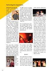 Performing Arts Department Performance in Dunclug for Ella’s hand in marriage. tween German adolescents In Year 9, Performing Arts Luckily the heroic Edward, pupils are Ella’s one true love, arrives introduced to save the day. This fantas- to the Vic- tic original drama was per- torian thea- formed twice on open tre style of evening, frstly with Denver melodra- Mahafy, Tori Dennison, ma. Melo- Glenn Robinson, Charlotte Liesel and Max, a German drama, a McKay and Lauren McCart- girl and a young runaway theatrical ney performing as the prin- Jewish boy from the popu- style akin to pantomime, is cipal cast. lar novel ‘The Book Thief’. one of the most popular topics studied in Key Stage This was followed by Char- They then adapted this to 3. Pupils enjoy inventing ley Connolly, Taylor White, create a heartfelt Drama their own melodramatic Brooklyn Sempey and Ja- dealing with the pair’s rela- performances comprising mie Graham undertaking tionship. Other groups kept of the stock characters of the roles for the second their performances upbeat, the hero, the damsel-in- performance. using the popular Musical distress and the villain as Grease to create a musical central fgures. Pupils enjoy solving the mystery of ‘The showcase about a holiday Murder in the Red Barn’’, romance that is kept se- one of the most famous cret. Pictured above, Nata- melodramas of the day and sha Adams and Georgia Col- performing Miss Courtney’s gan used their perfor- well-written and more mance to deliver a strong modern melodramatic mas- message to their audience- terpieces:- Don’t keep secrets from This year Miss Courtney The audience were rolling your best friend! Catherine penned the original melo- in the aisles and roaring Millar, Rebecca Fowler and drama entitled ‘An Ofer of with laughter at these well- Lea Campbell . Pictured be- Marriage’ which was per- crafted and entertaining low, used physical theatre, formed by all Year 9s for melodramatic performanc- monologues and drama to their Winter assessment. The piece told the story of es. explore how secrets can Ella and her mother Eliza- afect a family. Secrets! beth being blackmailed by their The GCSE showcase theme nasty ‘Secrets’ proved an inter- landlord Luther esting topic for Year 12 pu- who will pils as their fnal examina- forgo tion performance this April. the rent One group took inspiration in return from the secrets kept be- 104