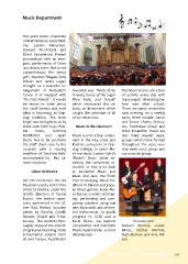 Music Department The junior music ensemble of Ruth Morrow, Holly McIl- roy, Lauren Alexander, Stewart McClintock and David Saunderson livened proceedings with an ener- getic performance of ‘Unto us a child is born.’ Not to be outperformed, the senior girls, Shannon Magee, Amy Wilson and Jenna Logan brought us a beautiful ar- rangement of Pachelbel’s favourite was ‘Waltz of the The Music rooms are a hive ‘Canon in D’ merged with Flowers; Dance of the Sugar of activity every day with ‘The First Nowell.’ It would Plum Fairy; and Trepak’ many pupils rehearsing be- be remiss to write about which showcased the ce- fore and after school. the Carol Service and omit leste, an instrument which There are many ensembles what is becoming an Dun- caught the attention of all now meeting on a weekly clug tradition. ‘We three of our Musicians. basis, these include: Junior Kings’ was brought to us by and Senior Choirs, Orches- three sixth form boys, Rob- Music in the classroom tra, Traditional Group and bie Erwin, Anthony Wind Ensemble. There are McWhirter and Jaylin Music is now a key compo- also many smaller music Sloan. Not to be outshone nent in the KS3, KS34 and groups which have formed the Staf Choir rose to the Post-16 curriculum at Dun- throughout the year; wor- occasion with a rousing clug College. In junior Mu- ship team, rock group and rendition of ‘Deck the Halls’ sic we study Gustav Holst’s our acoustic group. accompanied by Mrs La- ‘Planet’s Suite,’ while ex- mont on piano. ploring the symphony or- chestra. In Year 9 we look Ulster Orchestra at Incidental Music and Blues and Jazz. We fnish On 17th December, the AS Year 10 studying Music Tra- Musicians paid a visit to the ditions in Ireland and popu- Ulster Orchestra, under the lar Music genres. Every Mu- artistic direction of Tamás sic lesson consists of listen- Kocsis. The festive reper- ing, performing and com- toire, performed in the Ul- posing activities using our ster Hall, Belfast included new keyboards and orches- pieces by Rossini, Corelli, tral instruments. As pupils Mozart, Vivaldi and Tchai- progress to GCSE and A kovsky. The students thor- Level Music, we explore ‘Acoustic Jam’ oughly enjoyed the eclectic composition and extended Stewart Morrow, Lauren programme featuring many Music repertoire in a more Miniss, Chelsea Morrow, instrumental soloists from detailed way. Ruth Morrow and Amy Wil- all over Europe. A particular son THE BELLFORT SUMMER 2015 107