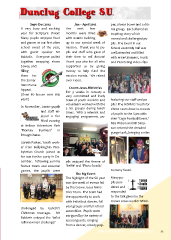 Sept- Dec 2014 Jan – April 2015 per, a beat boxer and a dra- A very busy and exciting The next few ma group. Each shared an year for Scripture Union! months were flled inspiring story which Many pupils enjoyed food with events building moved and challenged pu- and games at our frst after up to our special week of pils. The Event in our school event of the year, mission. Thank you to pu- School assembly hall was with guest speaker Mr pils and staf who gave of well attended and flled Baldwin. Everyone pulled their time to sell donuts! with entertainment, music together wrapping shoes Thank you also for all who and interesting video clips boxes, and supported us by giving flling money to help fund the them for mission events. We raised the Samar- over £1000. itans Purse Crown Jesus Ministries Appeal. For 3 weeks in January a (Over 80 boxes sent this very committed and lively year!) team of youth workers and featuring our staf and pu- volunteers worked with the pils! The NOMAD Youth for In November, Junior pupils 3 SU groups during lunch Christ Team drew in crowds and staf en- times. With a relevant and joyed a fun engaging programme, pu- of pupils to the Gym with their ‘Cage Football Event.’ flled evening Mrs Wilson and Mr Simp- at Indoor Adventure Park son entered the dreaded ‘Monkey Business’ in gunge tank, bringing smiles Broughshane. Gareth Parker, Youth work- er from Ballyloughin Pres- byterian Church joined us for our festive party in De- cember. Following yummy pils enjoyed the theme of festive treats and seasonal ‘Selfe’ and ‘Photo bomb.’ games, the pupils were to many faces! The Big Event The highlight of the SU year Many pu- was the week of events led pils pon- by the Crown Jesus Minis- dered and tries Team. The team had responded the opportunity to work to the talk given by the with individual classes, full Crown Jesus worker Mitch. year groups and full school challenged by Gareth’s assemblies. Pupils were Christmas message. Mr intrigued by the variety of Baldwin enjoyed the ‘toilet special guests, ranging roll snowman challenge!’ from a dancer, a body pop- THE BELLFORT SUMMER 2015 55