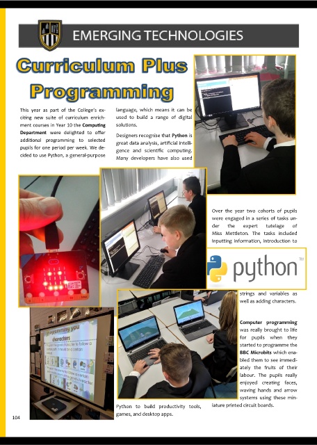 ment courses in Year 10 the Computing solutions.