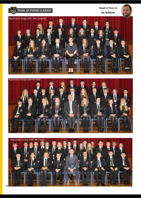 Head of Year 10 Mr Baldwin Registration Group 10CC: Mrs Campbell Registration Group 10DF Mr Fleck Registration Group 10ND: Mr Douglas 48