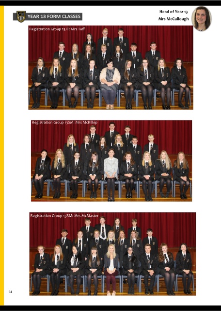 Head of Year 13 Mrs McCullough Registration Group 13JT: Mrs Tuff Registration Group 13SM: Mrs McKillop Registration Group 13RM: Mrs McMaster 54