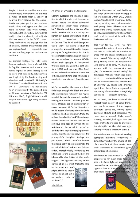 English Literature enables each stu- Analysis of Dystopian Literature: English Literature ‘A’ level builds on
