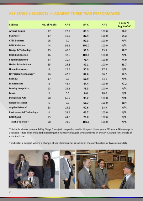 This table shows how each Key Stage 5 subject has performed in the past three years. Where a NI average is