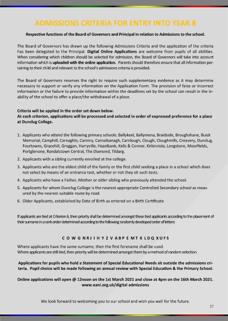 The Board of Governors has drawn up the following Admissions Criteria and the application of the criteria